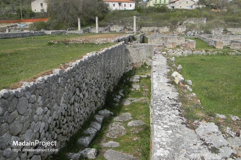 The archaeological site of Alba Fucens is characterized by its well-preserved urban layout. The city was constructed on a grid plan, with streets intersecting at right angles, a hallmark of Roman urban planning. The remains of the city walls, built using polygonal masonry, encircle the site, with several gates still discernible. Excavations have revealed the foundations of various public and private buildings, providing a comprehensive view of Roman urban life.