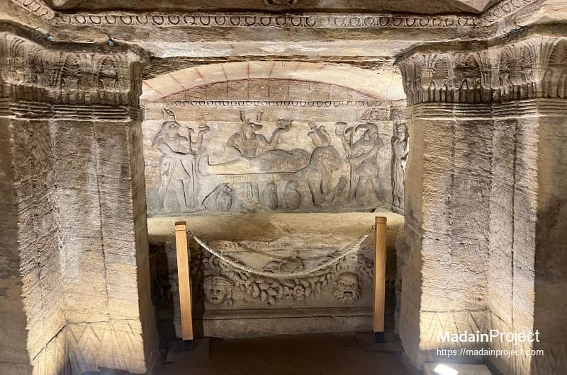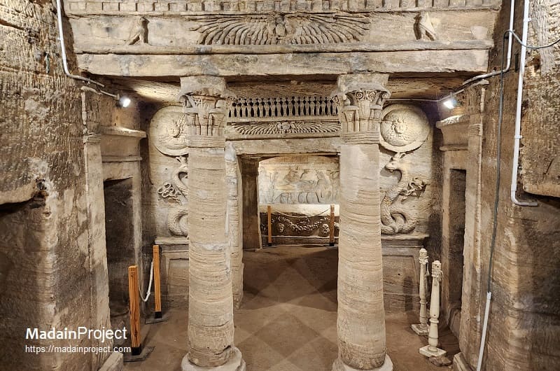 The Catacombs of Kom el-Shoqafa, located in the western necropolis of Alexandria, constitute the largest known Roman-era burial site in Egypt and a premier example of the cultural syncretism characteristic of the city from the 2nd to 4th centuries CE. The architectural and decorative elements throughout the labyrinthine network of chambers, which likely evolved from a private family tomb into a public cemetery, profoundly illustrate a fusion of Egyptian, Greek, and Roman artistic traditions. Notable features include a spiral staircase for lowering bodies, a central rotunda, a Roman-style triclinium (banquet hall) for funerary feasts. Read more