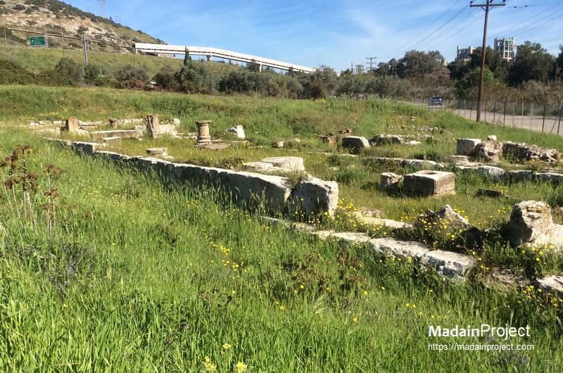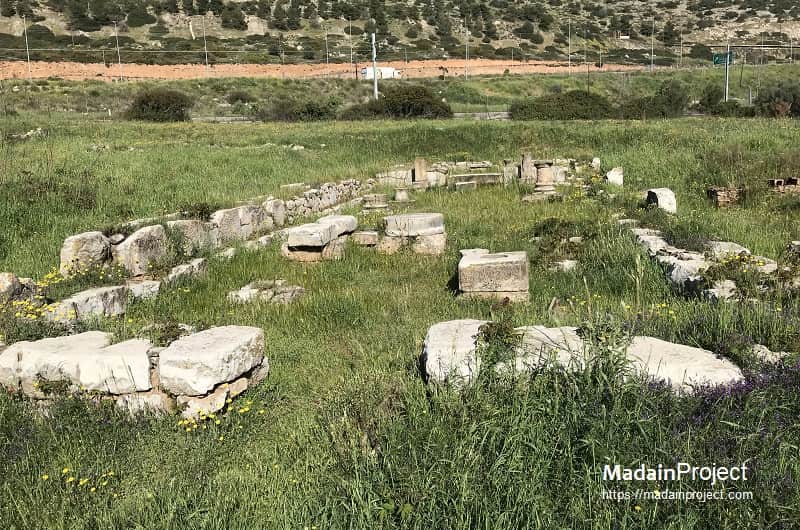 The Temple of Artemis at Aulis was a small peripteral or more likely distyle-in-antis structure built of local limestone, aligned east–west on the slope above the ancient shoreline. Its plan comprised a pronaos and cella resting on a simple stone platform, with an altar positioned directly to the east. Architectural fragments recovered from the site—including column drums, triglyph blocks, and roof-tile fragments—indicate a Doric order and construction phases spanning from the 5th century BCE through later restorations in the Hellenistic and Roman periods. Today, the temple survives only as a low outline of foundation stones and scattered architectural debris partially embedded in the soil. The area is overgrown, with traces of the stylobate and wall bases still visible, while much of the superstructure has been lost to time and local reuse of stone. The ruin remains identifiable by its orientation and masonry layout, preserving the material footprint of the sanctuary that once dominated the ancient harbor approach.