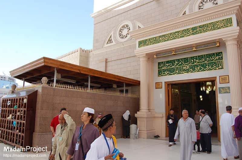 Bab al-Baqi' (باب البقيع), al-Baqi' gate also known as the Bab al-Jum'a (باب الجمعة) is the closest located gate to the Prophet Muhammad's burial chamber. The gate was most likely first installed in 873 CE during the time of Ishaq ibn Muhammad al-Ja'di. Bab al-Baqi', gate no. 41, is one of the major gates of Masjid an-Nabawi.