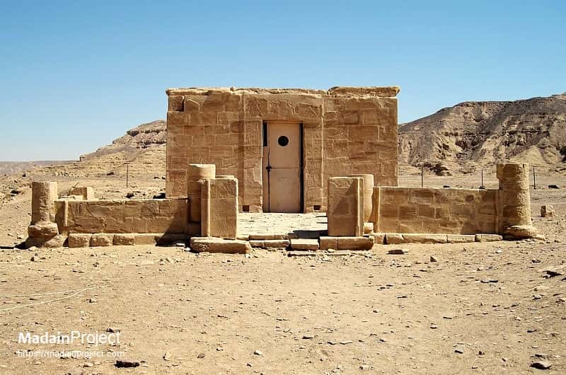 The temple of Thutmosis IV and Amenhotep III, also called the repository chapel of Amenhotep III, is a small temple (one of the best preserved from from the ancient Egypt) dedicated to the goddess Nekhbet of elKab as the Lady of the Mouth of the Wadi. She is depicted here in a form of the goddess Hathor as the wandering solar eye goddess, and the columns within the temple take the form of the sistrum (a rattle used in the temple or ritualistic music) topped by the head of the goddess Hathor.