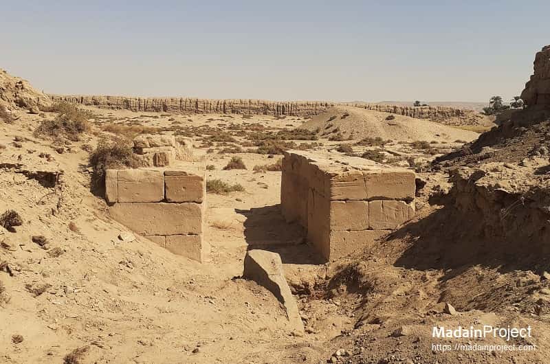 The central district of the ancient city of Nekheb was enclosed inside a large mud-brick enclosure wall. This walled enclosure encompassed an area of some 25,000 square metres (270,000 square feet), and contained the residential houses, temple complex, public and government buildings. The massive mudbrick walls, still largely preserved to their height in south eastern corner, dating to the Late Period (747–332 BCE) are thought to have been built by Nectanebo II as a defensive measure.