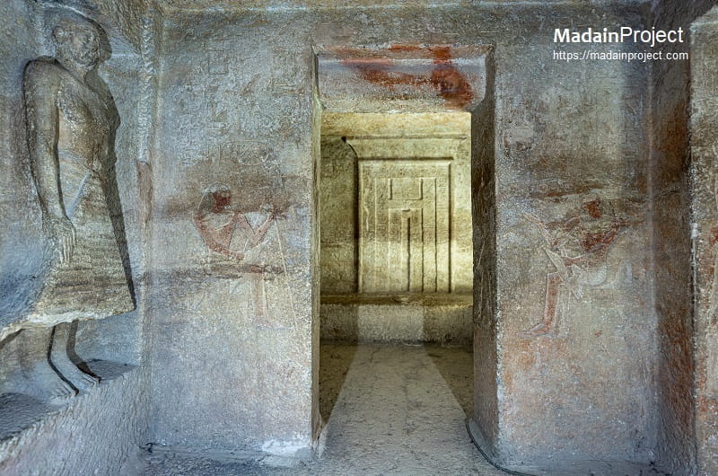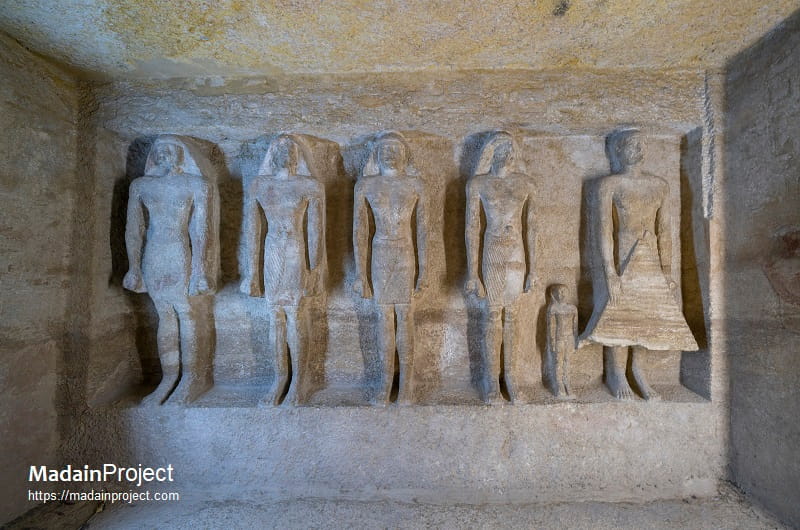 In addition to the main chapel associated with Qar, a second chapel was discovered within the complex and is generally interpreted as belonging to his wife. Several burial shafts are distributed within the courtyard and surrounding spaces, each leading to underground burial chambers. These shafts likely accommodated members of Qar’s family and dependents.