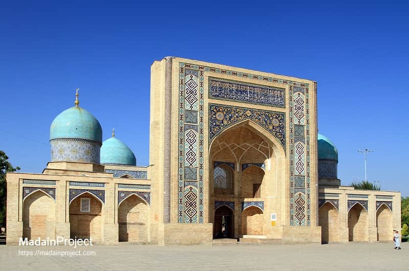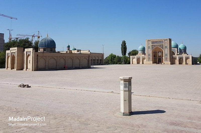 The Hazrati Imam complex (Uzbek: Hazrati Imom majmuasi), (also spelled Khazrati Imam, Hast Imam, Hastimom) is a religious-heritage architectural ensemble in the old city of Tashkent, Uzbekistan. It centers around the tomb of Abu Bakr Muhammad ibn Ali ibn Ismail al-Kaffal ash-Shashi (often shortened to Kaffal Shashi or Hazrati Imam), a celebrated Islamic scholar, and comprises mosques, madrasahs, mausoleums, libraries, and more. The complex functions as a locus of religious worship, pilgrimage, education, manuscript preservation, and recent institutional development (including heritage restoration). It is administered in part by the Muslim Board of Uzbekistan and serves both religious and academic purposes, particularly in preserving Central Asian Islamic culture.