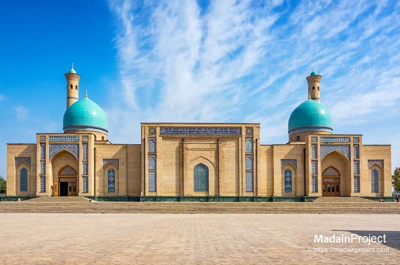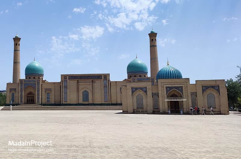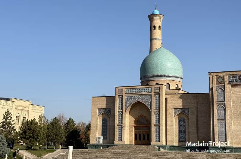 Constructed in the early 21st century as part of Uzbekistan’s post-independence cultural revival, the Hazrati Imam Mosque is the largest structure in the ensemble. With its monumental scale, multiple domes, and two soaring minarets, it reflects both continuity with classical Islamic architecture and the ambitions of modern nation-building. Serving as the main congregational mosque of Tashkent, it anchors the religious and cultural life of the city while complementing the historical monuments of the complex.