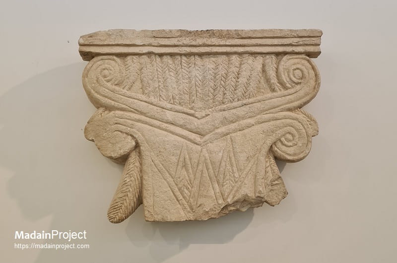 The anta capital in the Ionic order, positioned atop the antae (terminal walls of a structure), constitutes a distinct variation within the Ionic order, differing significantly from the columnar capital in both form and function. It was used where the sides terminated in walls rather than columns. And instead of employing volutes, the Ionic anta capital is typically composed of a series of horizontal moldings, often including a cyma reversa profile and decorative bands such as palmettes or anthemia. This rectilinear emphasis corresponds to the planar nature of the wall it terminates, creating a coherent visual transition between vertical wall surfaces and the entablature. Examples of Ionic anta capitals are evident in Asia Minor and mainland Greek architecture, and their influence can be traced in later adaptations such as the Pataliputra capital, which exhibits formal affinities with Ionic anta prototypes. The anta capital demonstrates the adaptability of the Ionic decorative system to different architectural elements while maintaining stylistic coherence.