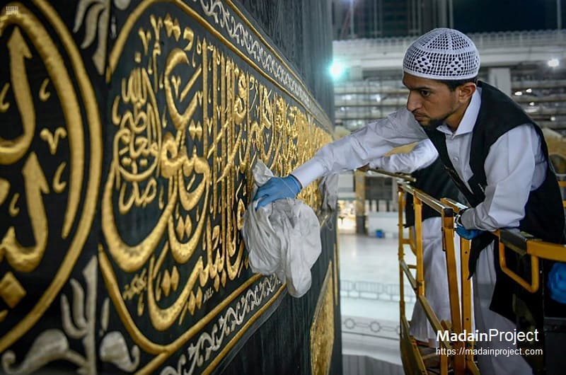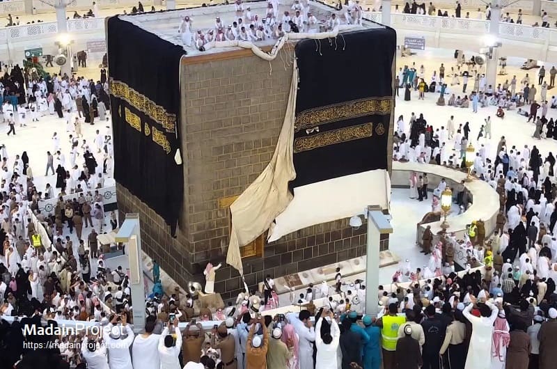 Historically, the delivery of the Kiswa to Mecca was marked by elaborate processions spanning vast distances, particularly during the Mamluk Sultanate and Ottoman Empire periods, when the annual caravan from Fustat (Cairo) was a major political and religious event. In the city of contemporary Saudi context, the procession has been transformed into a localized ceremonial transfer within Mecca itself. On the 9th of Dhu al-Hijjah, the Day of ʿArafah, the old Kiswa is removed and the new one installed in a carefully coordinated operation conducted by trained teams within the Masjid al-Haram. Although devoid of the long-distance caravans of earlier centuries, this modern procession retains its symbolic weight, reaffirming continuity with a tradition that links craftsmanship, ritual timing, and custodianship of Islam’s most sacred site.