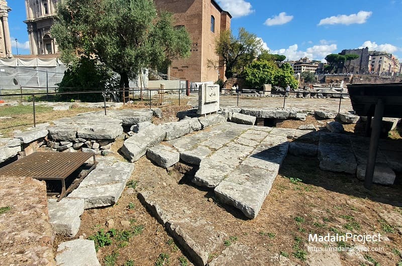 By the late Republican period, the site had been formalized within the Forum’s paved surface. Stratigraphic evidence shows successive layers of cappellaccio, tufa, and finally travertine pavement, indicating multiple restorations corresponding to broader refurbishments of the Forum. The curbed or puteal-like structure visible today probably dates from this phase, when earlier marsh or ritual pit features were monumentalized into stone form, possibly as part of a program of memory preservation or topographical sacralization.