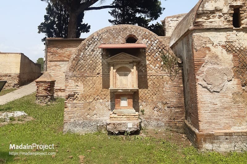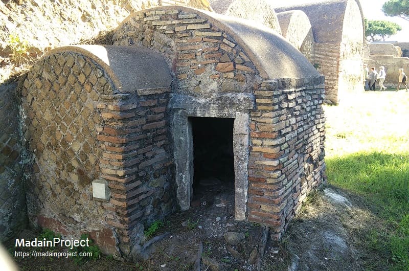 Tomb 94 thus exemplifies the layered development of Ostian funerary architecture: an early second-century burial chamber with substantial decorative ambitions, later enclosed and subdivided for multiple users, including imperial slaves and their descendants, reflecting both private family devotion and broader social networks within the necropolis.