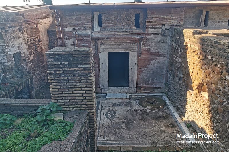 This likely referred to the consecration of the floor or the tomb itself. Beneath the floor were three additional burial places, and restoration work revealed an older, primarily white mosaic in the corners, indicating earlier phases of use.