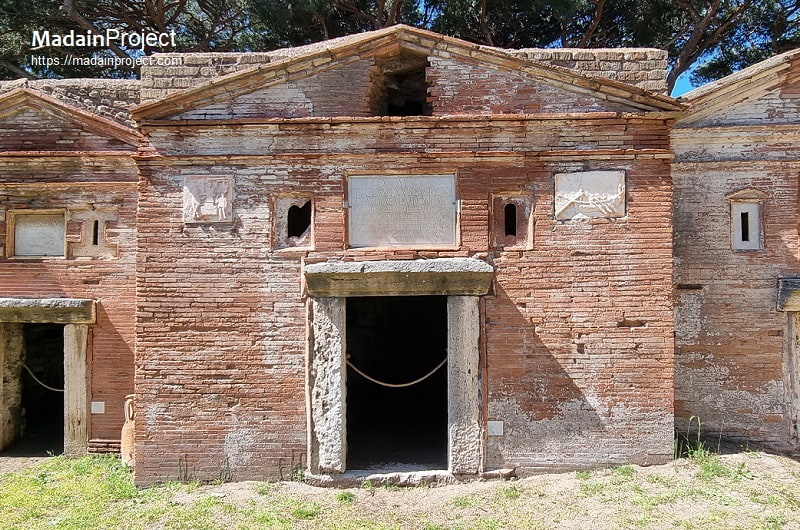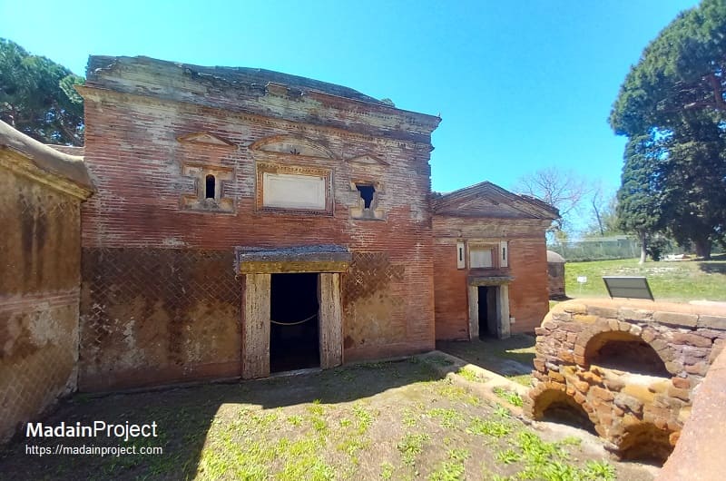 The tombs in the Isola Sacra Necropolis constitute a structured ensemble of funerary monuments located on the Isola Sacra, the artificial island between the river Tiber and Fiumicino rivers, adjacent to the ancient port of Ostia. This necropolis served as the principal burial ground for the inhabitants of Ostia and its environs from the late first century BCE through the third century CE. The individual tombs at Isola Sacra form part of a recognizable funerary typology, combining house-shaped monuments into a dense, street-based city of the dead.