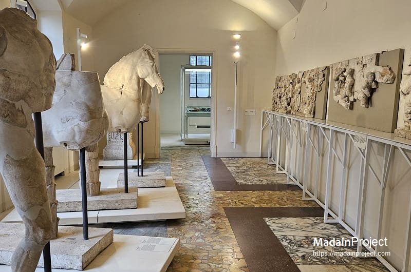 Another prominent exhibit features the statues of the Dioscuri—Castor and Pollux—and their horses. These sculptures are emblematic of the Forum’s religious topography, recalling the ancient tradition that the divine twins appeared at the Battle of Lake Regillus in 499 or 496 BCE to announce Rome’s victory. Their cult became firmly rooted in the area near the spring of Juturna (Fonte Iuturna), and the statues displayed in the museum evoke both the mythic and civic aspects of their veneration.