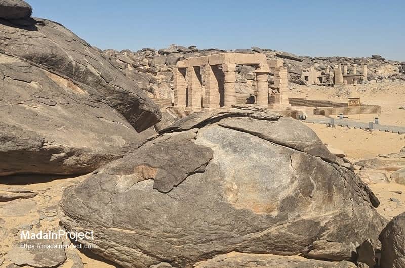 The site of New Kalabsha was conceived during the UNESCO-sponsored International Campaign to Save the Monuments of Nubia, initiated when the construction of the Aswan High Dam threatened to submerge an immense stretch of Nubia beneath the rising waters of Lake Nasser. Engineers and archaeologists selected a high granite outcrop on the western shore, about 50 kilometres south of Aswan, and approx. 1.5 kilometers south-west of the Aswan Dam, as the principal relocation zone for several monuments from different periods and sites. When the filling of Lake Nasser began, this elevated promontory gradually became encircled by water, transforming it into an island accessible only by boat.