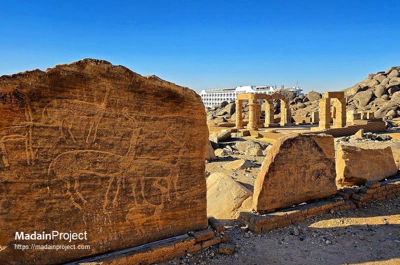 New Kalabsha, an open air museum for the relocated archaeological structures from ancient Talmis (Kalabsha), is a promontory near Aswan, southern Egypt, which houses several ancient Egyptian and Nubian monuments moved from their original sites in Lower Nubia. These relocations took place during the mid-20th century to protect them from inundation by Lake Nasser, which was created when the Aswan Dam was built. The name “New Kalabsha” distinguishes this safe-site as the new home for structures formerly located at Old Kalabsha or Bab al-Kalabsha (Roman Talmis) and other Nubian sites now submerged.