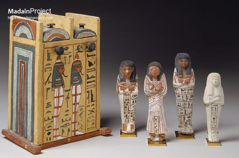 Mortuary religion also evolved. Textual corpora such as the Book of the Dead became more widely available beyond the royal sphere, reflecting a broader “democratization” of afterlife beliefs. Tomb decoration incorporated increasingly elaborate iconographic programs depicting the journey through the underworld, drawing on compositions such as the Amduat and the Book of Gates.