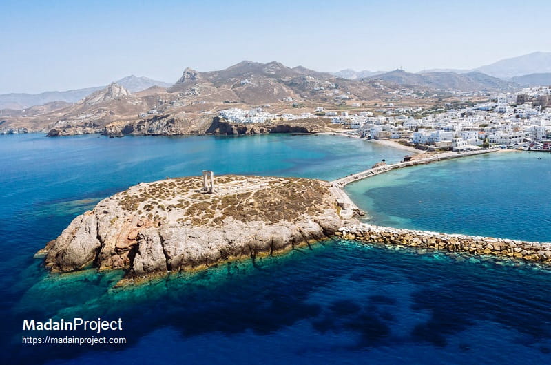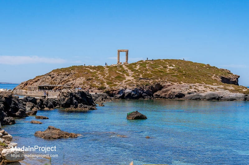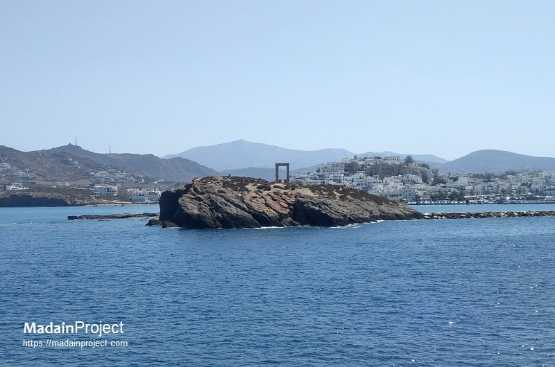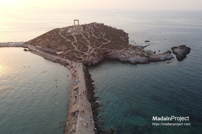 Palatia or the islet of Palatia is a small, rocky island at the harbour entrance of Naxos in the Cyclades, famously home to the Portara Temple of Apollo. It is one of the most iconic landmarks in Greece and is connected to the main town of Naxos (Chora) by a paved causeway (isthmus).