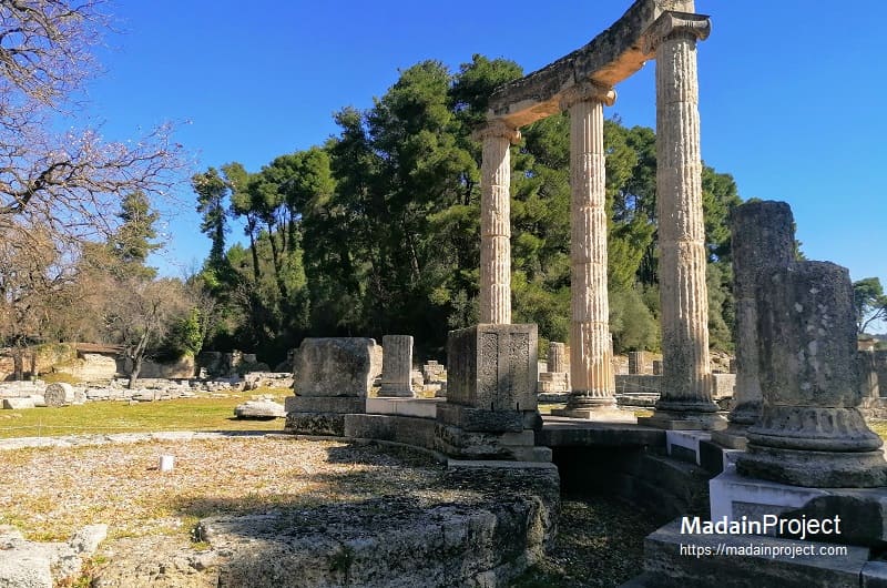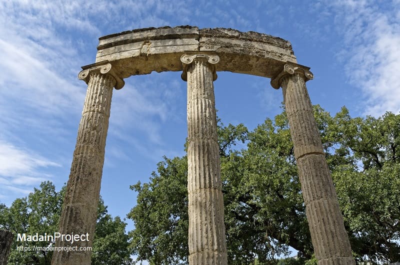 The Philippeion of Olympia, commissioned by Philip II of Macedon following the Battle of Chaeronea in 338 BCE and completed by Alexander the Great, is a landmark tholos (circular building) within the sacred Altis. Situated west of the Temple of Hera, it is the only circular structure in the sanctuary and represents a critical transition toward Hellenistic architectural forms by blending diverse orders and royal iconography.