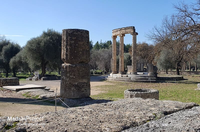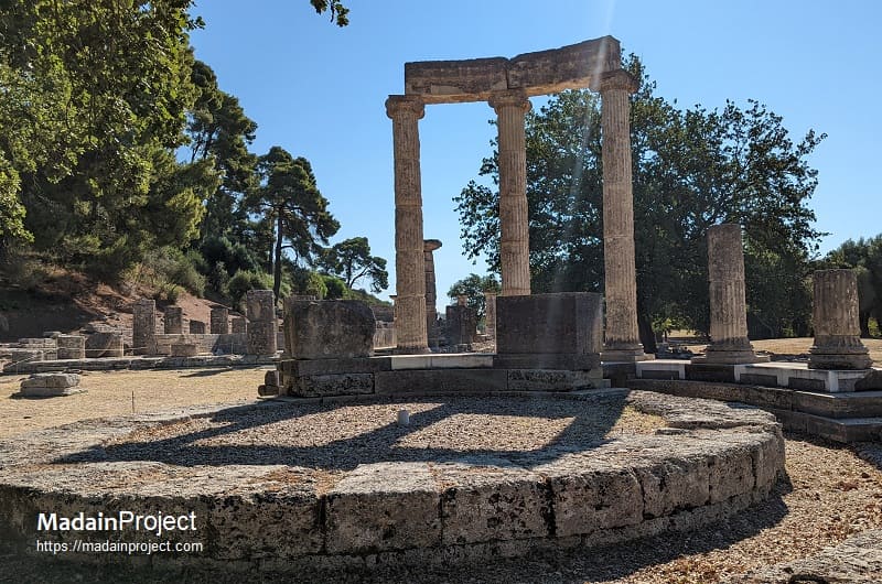 The Philippeion is an ancient tholos structure located in the sanctuary of Olympia in Greece, renowned for both its historical and architectural significance. It was originally built in the 4th century BCE and stands as an emblematic symbol of the confluence of Greek religious devotion, artistic innovation, and political expression. It was erected by King Philip II of Macedon to commemorate his victories and to honor his family, including his son, Alexander the Great. The Philippeion represents a distinctive blend of Greek tradition and Macedonian royal prestige, situated in the heart of one of the ancient world's most important religious and athletic centers.