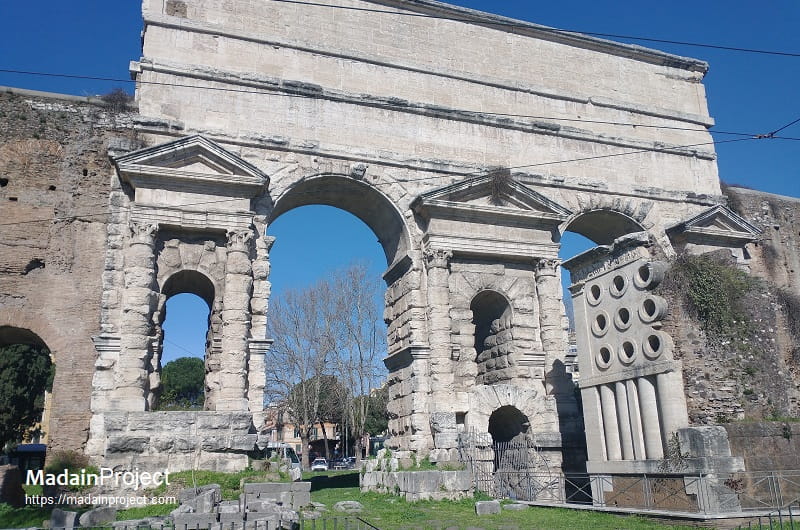 Two ancient roads once ran through the monumental gate, the Via Praenestina and the Via Labicana. The Via Prenestina was the eastern road to the ancient town of Praeneste (modern Palestrina). The Via Labicana (now called the Via Casilina) heads southeast from the city.