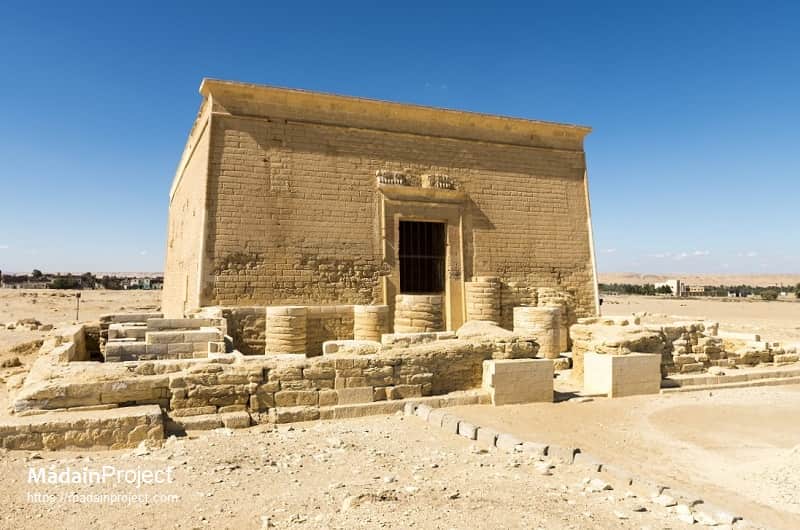 The site represents a convergence of Egyptian, Hellenistic, and Roman cultural elements within the Faiyum Oasis, a region historically associated with intensive agriculture and the cult of the crocodile-god Sobek. The principal structure is a temple from the Ptolemaic period, approximately third to second century BCE, dedicated to Sobek-Ra, the principal deity of the area. Around it lay the ancient town of Dionysias (named after the god Dionysus), a Greco-Roman settlement that served both administrative and commercial functions along desert caravan routes. The town was gradually abandoned by Late Antiquity, leaving the temple as the most prominent surviving feature.