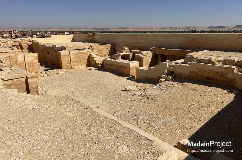 Architectural details—such as door lintels, false doors, and niches—demonstrate continuity with earlier Pharaonic traditions while incorporating Hellenistic construction techniques, particularly in the careful alignment of stone courses and the integration of multi-story circulation. The absence of significant inscriptions or reliefs has limited precise chronological attribution, but stylistic parallels point to a Ptolemaic date. The temple’s remarkable state of preservation, including its intact roofing and interior stairways, makes it one of the best-preserved examples of late Egyptian religious architecture and a key source for understanding the regional architectural vocabulary of the Faiyum during the Greco-Roman era.