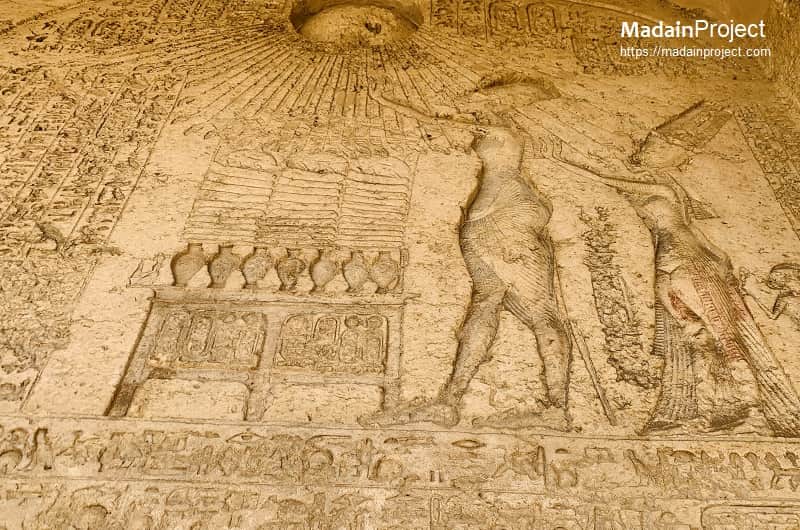 The tomb’s decoration program is centred on the royal family and the worship of the Aten, the sun disc, rather than traditional funerary texts or imagery associated with the Osirian afterlife. Many surfaces originally intended for elaborate decoration (possibly painted or plastered reliefs) have been lost due to both ancient desecration and the soft quality of the bedrock and plaster, which made preservation difficult.