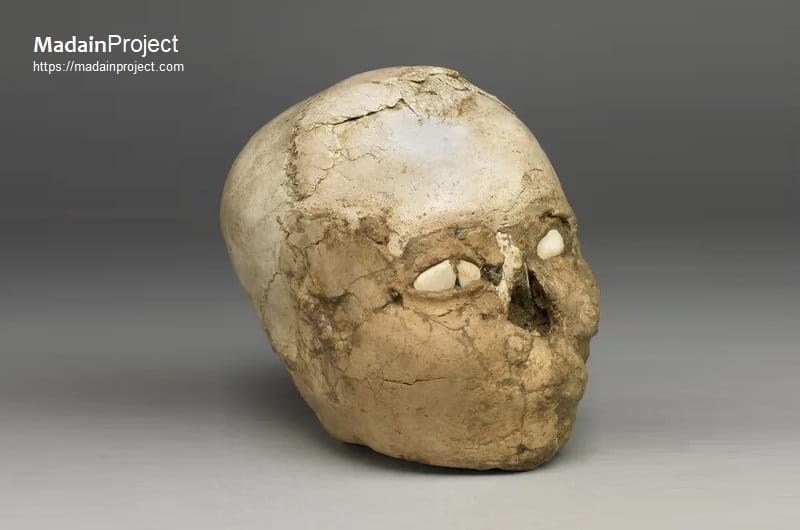 The collection of Jericho skulls constitutes a significant assemblage of Neolithic bio-artifacts originally recovered from Tell es-Sultan (Ancient Jericho) in Palestine. The primary discovery occurred in 1953 under the direction of Kathleen Kenyon, who unearthed a cache of seven plastered crania, with subsequent excavations in 1956 and 1958 bringing the site total to approximately ten specimens. Chronologically assigned to the Pre-Pottery Neolithic B (PPNB) period—roughly 7000–6000 BCE—these items are characterized by the post-mortem removal of the mandible and the application of lime plaster to the facial skeleton. Internally, the crania were typically packed with soil to provide structural support for the modeling of lifelike features, including noses, ears, and cheeks. A hallmark of the Jericho collection is the use of bivalve or cowrie shells to simulate eyes, sometimes accompanied by traces of red or black pigment to represent skin tones or ritual markings.