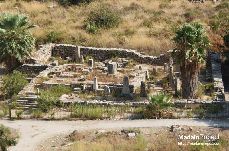 The Temple of the Obelisks is notable for its complex superimposed design and ceremonial arrangement. The underlying L-shaped Temple, first constructed in the Early Bronze Age, was partly dismantled and repurposed when the later temple was built. The newer sanctuary consisted of a rectangular cella oriented roughly north–south, with a large open courtyard paved in beaten earth and gravel. Within this courtyard stood dozens of limestone obelisks of varying sizes, some inscribed or carved with reliefs, arranged in apparent ritual order around central altars and offering tables. Many of the obelisks bore dedicatory symbols such as the ankh or representations of deities, reflecting a syncretic fusion of Egyptian religious imagery with local Canaanite worship practices.