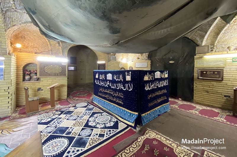 The site, earlist mentioned circa 1200 CE as a Sufi pilgrimage site, in Baghdad attributed to Yūshaʿ ibn Nūn (Joshua bin Nun) is a vaulted brick shrine said by local tradition to contain the prophet’s tomb. According to this tradition, the site features a large rectangular sand-wood coffined burial covered in richly embroidered textiles, and is entered through a low doorway into a domed chamber. The belief in this attribution has no corroborated archaeological foundation and is classified by some scholars as a “secondary” grade shrine within the broader corpus of multiple claimed tomb-sites of Yūshaʿ.