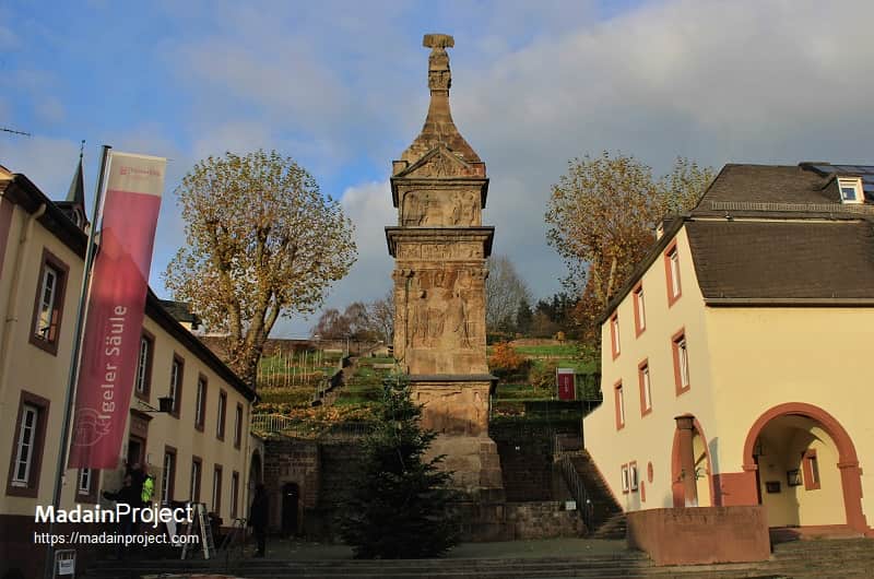 The Igel Column is a multi-storeyed Roman sandstone column in the municipality of Igel, Trier, Germany, dated to circa 250 CE. The column is the burial or funerary monument of the Secundinii cloth merchant family, and was built by two of the family members, Lucius Secundinius Aventinus and Lucius Secundinus Securus. The bas-reliefs on the Roman imperial period column feature a procession of six coloni, bringing various donations to the house of their master. Read more