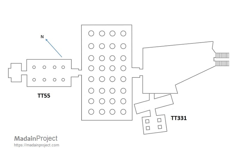 TT55 is the Theban private tomb of Ramose, who served as a high-ranking vizier and “Governor of the Town” at Thebes during the late reign of Amenhotep III and the early reign of Amenhotep IV (Akhenaten). The tomb is located in the Sheikh abd el-Qurna quarter on the west bank of the river Nile opposite modern Luxor. It is widely cited as an important documentary example of the artistic transition from traditional New Kingdom court art toward the so-called Amarna style.