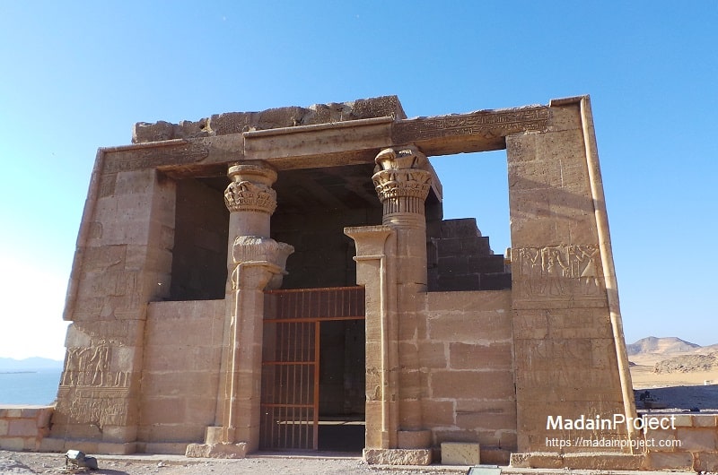 It is an unfinished ancient Egyptian temple from the Roman Empire period. Intended to be dedicated to Isis and Serapis, it has not been securely attributed to any Roman emperor's reign. The only part of the structure that was finished "was a court measuring 13.56 X 15.69 meters, which was surrounded on three sides by columns". The Temple of Maharraqa features an architectural curiosity with a winding spiral staircase at a corner of the court, which led to its roof.