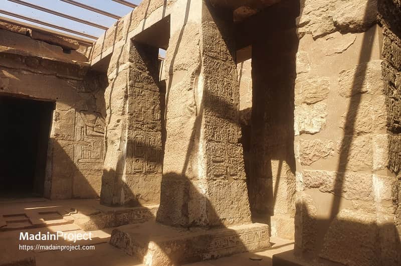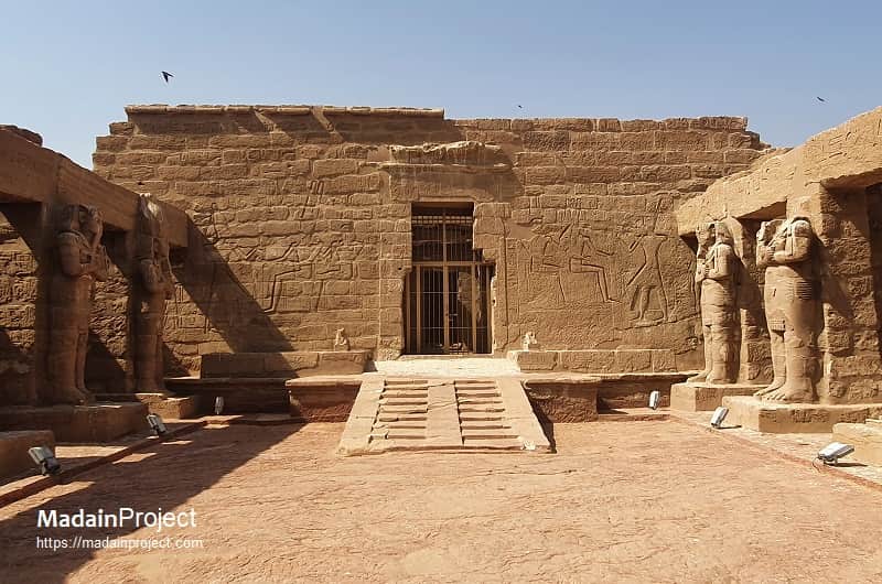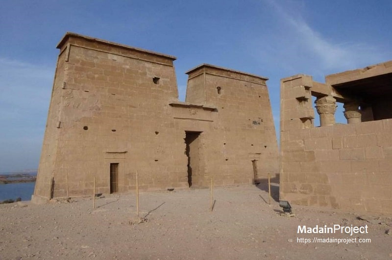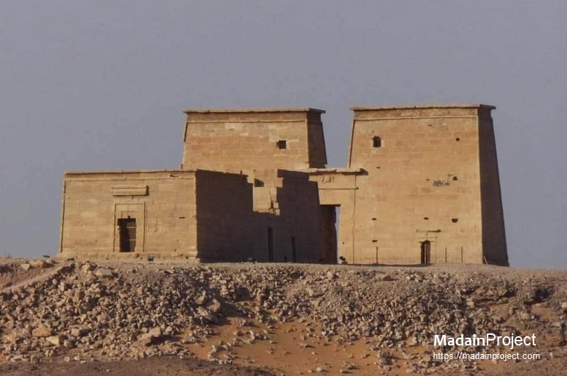 The Greco-Roman Temple of Dakka (معبد الدكة), dedicated to Thoth, is today located at the New Wadi es-Sebua area. Dedicated to Thoth, the god of wisdom in the ancient Egyptian pantheon, it initially consisted on just a small one-room shrine or chapel, first begun in the third century BCE and subsequently enlarged. During the Roman period, the emperors Augustus and Tiberius further enlarged the structure with "the addition, at the rear, of a second sanctuary as well as inner and outer enclosure walls with a large pylon.