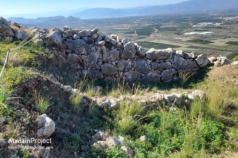 The acropolis was established on a hill, approx. 268 meters high that dominates the eastern end of the Argive Plain. It held a strategic position with an unhindered view in all directions and it was in communication with the other centers of the Argolid, as observed from the traces of a Mycenaean road system in the region.