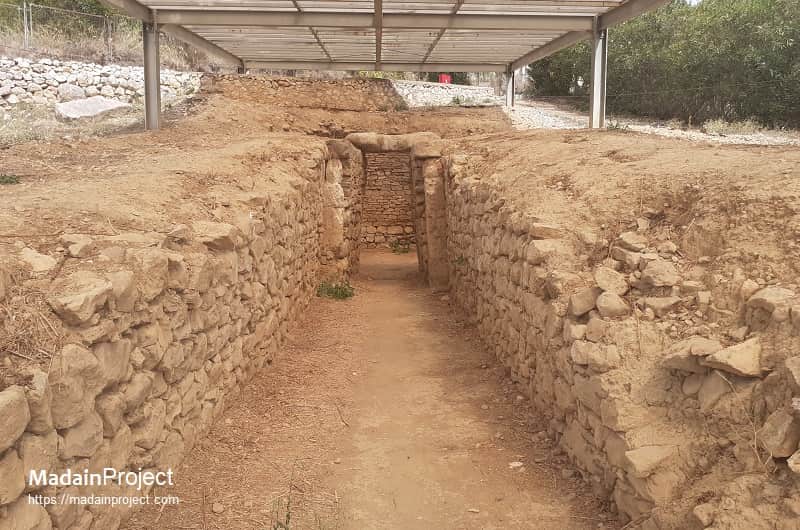 Sixteen chamber tombs have been recorded at Dendra. Several were robbed prior to excavation; nonetheless the group yields important variation in plan and practices: long sloping dromoi with monumental façades, rectangular or roughly rectangular chambers (some with gabled roofs and plastered walls), and variation in access (dromos versus vertical shaft). Finds include human burials, animal deposits, pottery, weapons, metalwork and ritual traces (e.g., intense burning in some contexts).